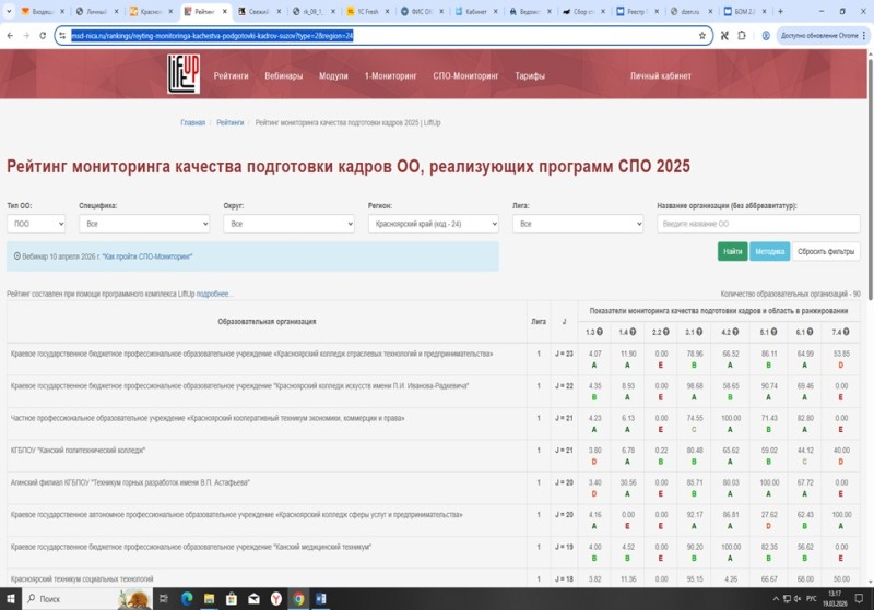 Ссылка на рейтинг: https://msd-nica.ru/rankings/reyting-monitoringa-kachestva-podgotovki-kadrov-suzov?type=2®ion=24