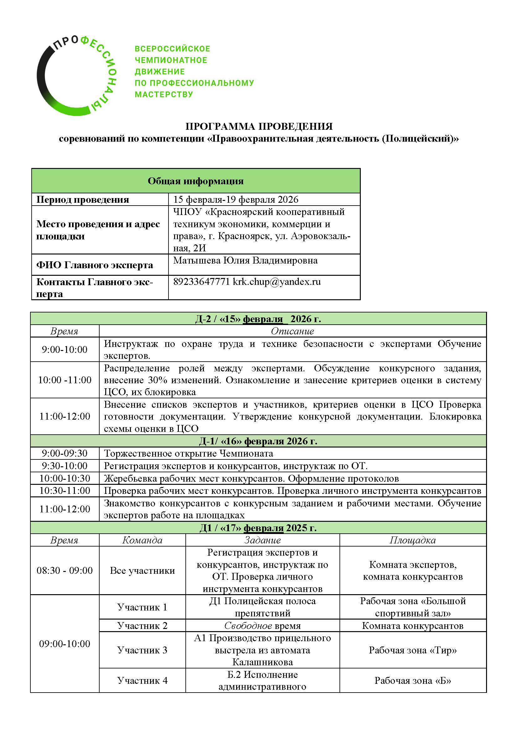 С 15.02.2026 г. по 20.02.2026 г. в ЧПОУ «Красноярский кооперативный техникум экономики, коммерции и права» в рамках Всероссийского чемпионатного движения по профессиональному мастерству «Профессионалы» открывает работа площадка Регионального этапа по компетенции «Правоохранительная деятельность (полицейский) - юниоры».