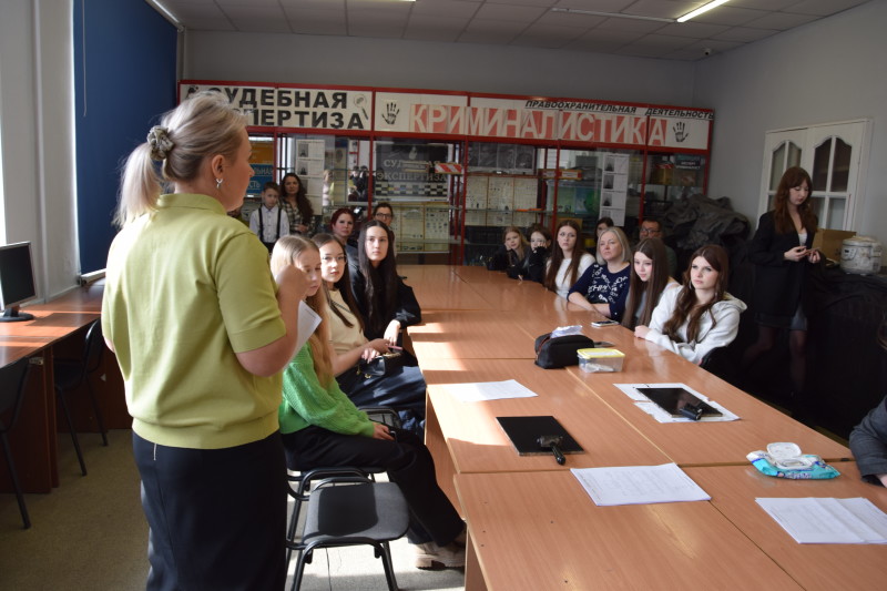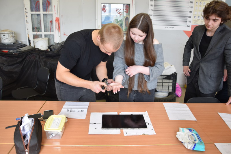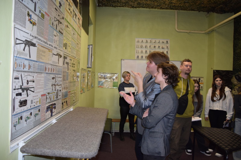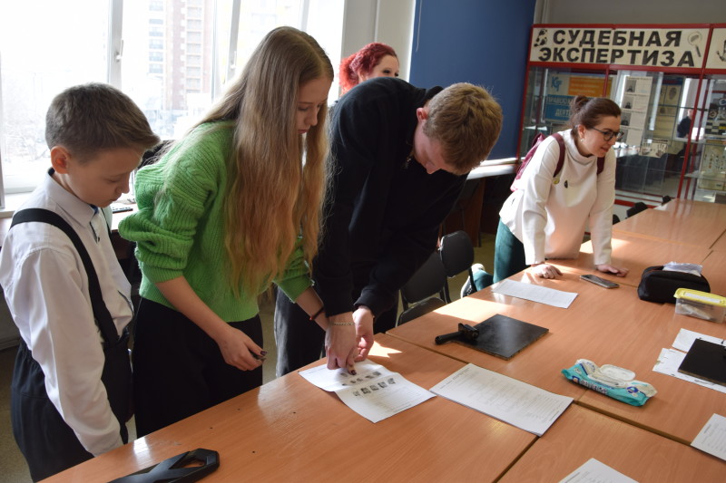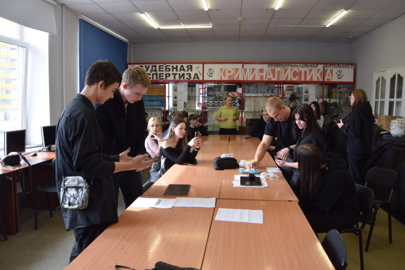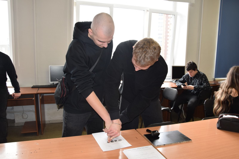 Специальность 40.02.02 Правоохранительная деятельность представили преподаватели Матышева Ю.В. и Нефедова Т.В. вместе со студентами группы ПДИ-2(3) Морозовым Т., Морозовым Д., Аман А., Аксеновой В., Майер В. Они рассказали о специальности и познакомили с криминалистической лабораторией и полигоном для отработки навыков по изъятию следов преступлений, дактилоскопирования и продемонстрировали работу специального средства – металлоискателя. В тире для отработки навыков огневой подготовки преподаватель Викторов А.А. рассказал о действующих в техникуме военно-патриотическом клубе «Пантера» и военно-патриотическом отряде «Гвардеец», а также об оружии, состоящем на вооружении в системе правоохранительных органов.