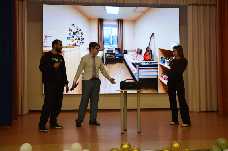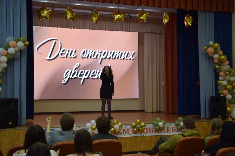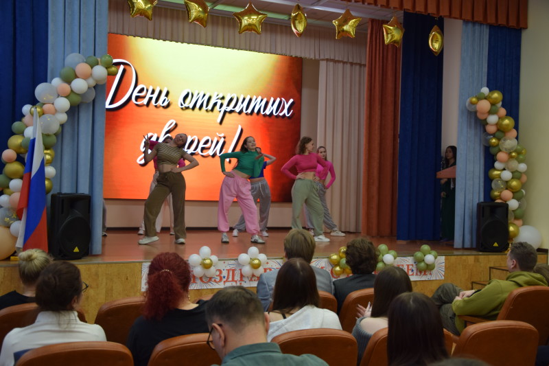 Последней локацией для гостей был актовый зал, где их ждали активисты Студенческого совета. Председатель Студенческого совета Елсуков С. (гр. ТГ-2) рассказал школьникам, родителям и их педагогам о том, чем занимается Студенческий совет, о целях и задачах, об успехах и победах в различных конкурсах и соревнованиях, о возможностях творческой и спортивной самореализации. Затем школьникам показали небольшой концерт, в котором приняли участие ведущие Савоськина А. (гр. ЮВ-2) и Полянский К. (гр. ЮБ-2(3), вокалист Харитонова А. (гр. ПДА-1), в сценке КВН участвовали Агаев (гр. ЮБ-2(3), Черкасова Л. (гр. ПДГ-2), Рахманова К. (гр. ЮБ-1), Самылина А. (гр. ПДЛ-1), Елсуков С. (гр. ТГ-2) и танцевальная группа «Адреналин» в составе Маленьких В. (гр. ЮА-2(3), Традина Д. (гр. ПДМ-2), Черкашина А. (гр. ЮВ-2), Торинцева К. (гр. ПДВ-1(2), Ставерская Я. (гр. ПДЗ-1), Ехлакова А. (гр. ПДИ-1). А провести концерт помогали диджеи Веселовская В. (гр. ЮА-1), Фадеева А. (гр. ПДД-2).