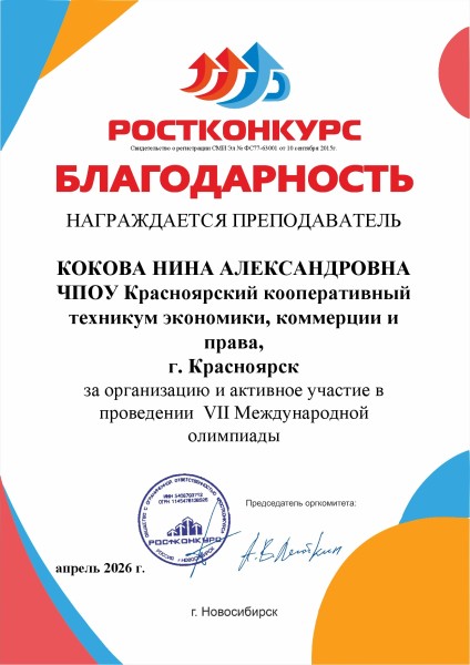 Под руководством преподавателя техникума Коковой Нины Александровны обучающиеся техникума завоевали: