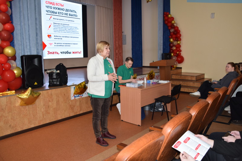 При организации преподавателя техникума Хижняк Марии Игоревны, Фролова Валентина Алексеевна и Федотов Дмитрий медицинские психологи КГАУЗ «Красноярского краевого Центра профилактики и борьбы со СПИД» для студентов учебных групп: ПДВ-1, ПДГ-1, ЮА-1, ЮАА-1, ЮБ-1, ЮББ-1, ТД-1, ТДА-1, Б-1, БА-1, Б-2, Б-1(2), ПДВ-2, ПДГ-2, ЮА-1(2), ЮАА-1(2), ЮА-3, ЮАА-3, ТД-2, ТДА-2 провели серию профилактических мероприятий в целях усиления борьбы с распространением вируса иммунодефицита человека путем повышения уровня информированности населения о заболевании, вызванном ВИЧ в соответствии с Государственной стратегией противодействия распространению ВИЧ-инфекции на территории Российской Федерации на период до 2030 года