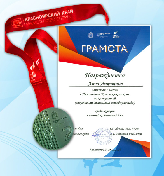 Наша результативная спортсменка Никитина Анна пополнила копилку наград техникума в 2026 году завоевав: